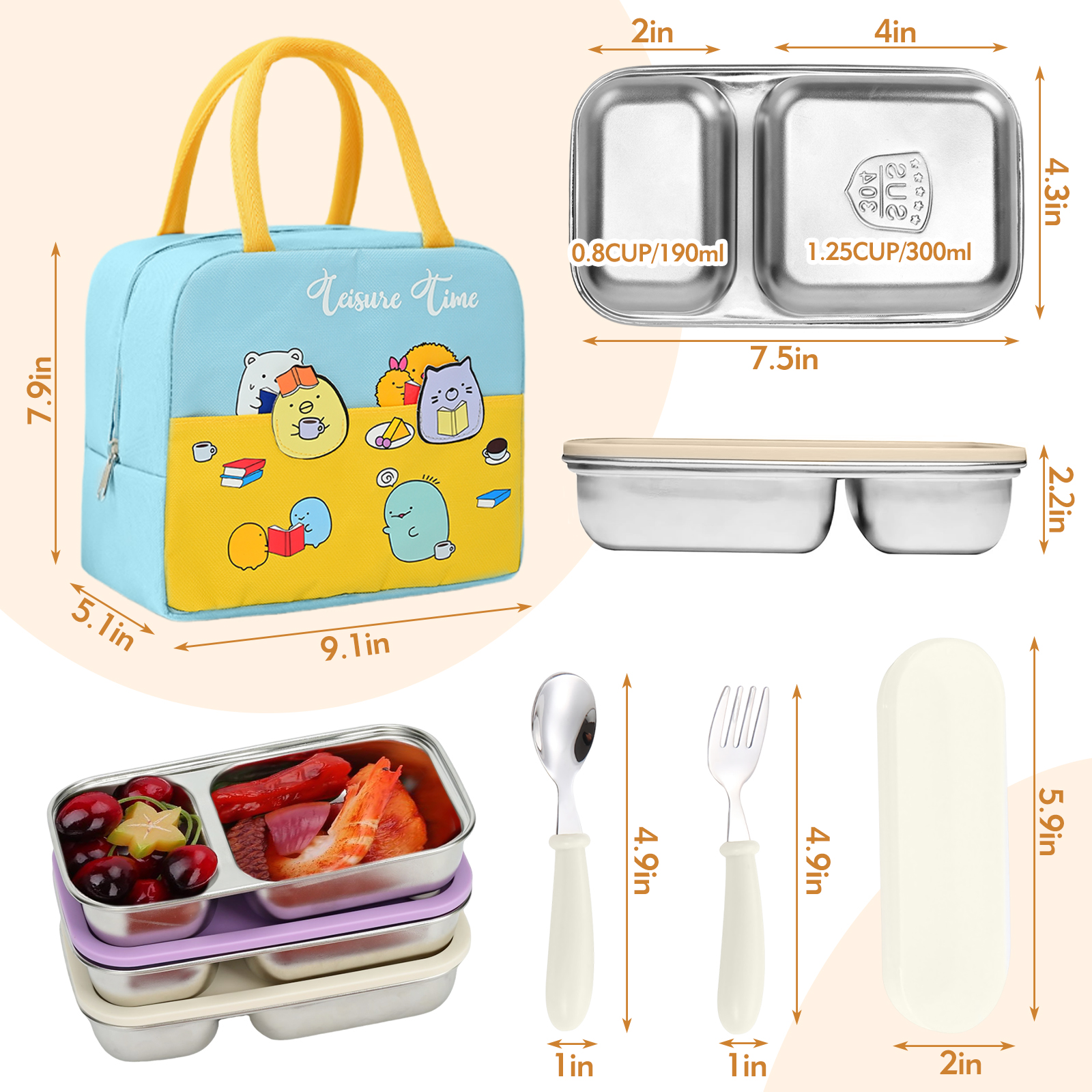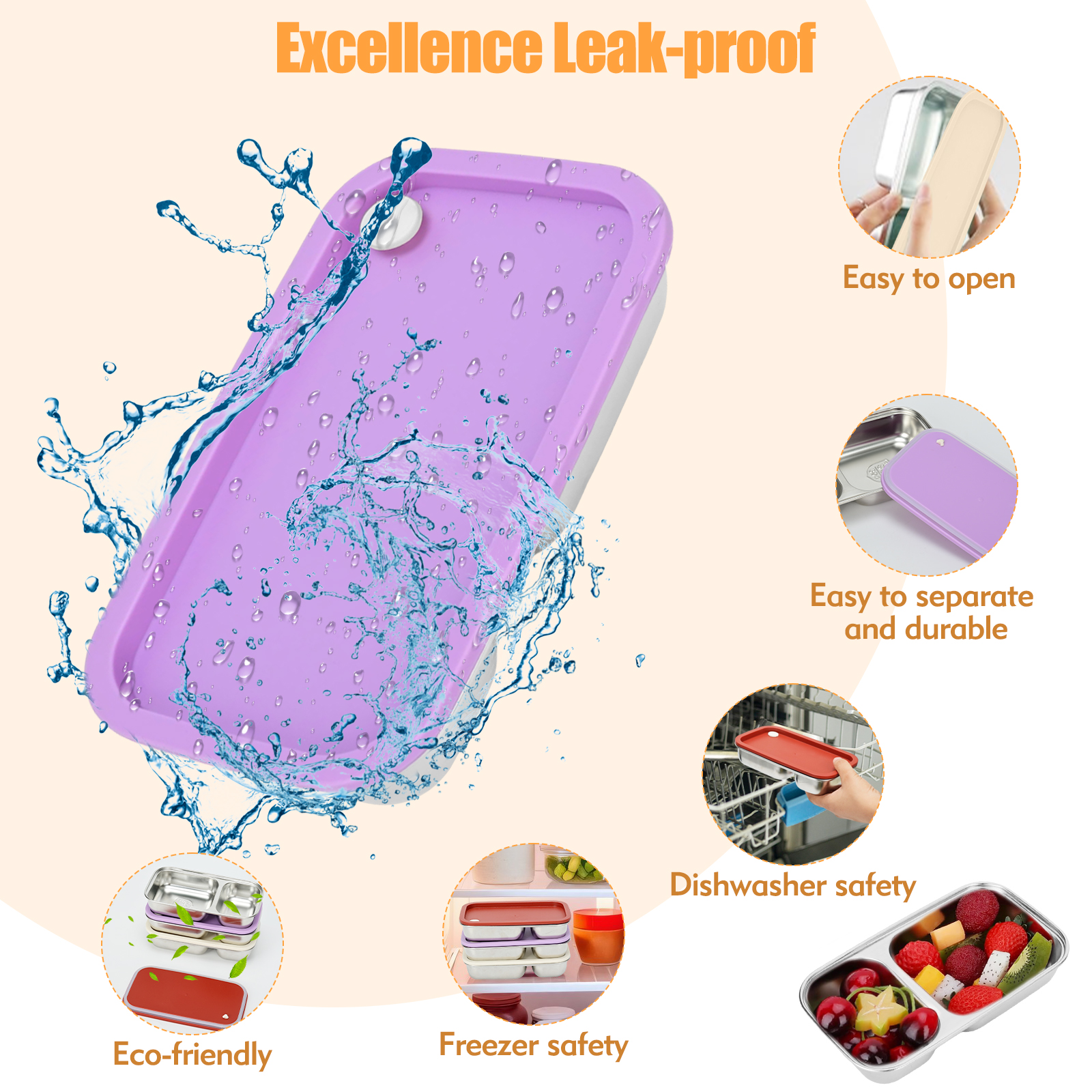 FVNANL 3 Pack Stainless Steel Snack Containers Grab and Go Reusable Snack Containers with Lids, 2 Compartment Leakproof Metal Food Storage Box for Travel, Lunch, Outdoor, Camping, School