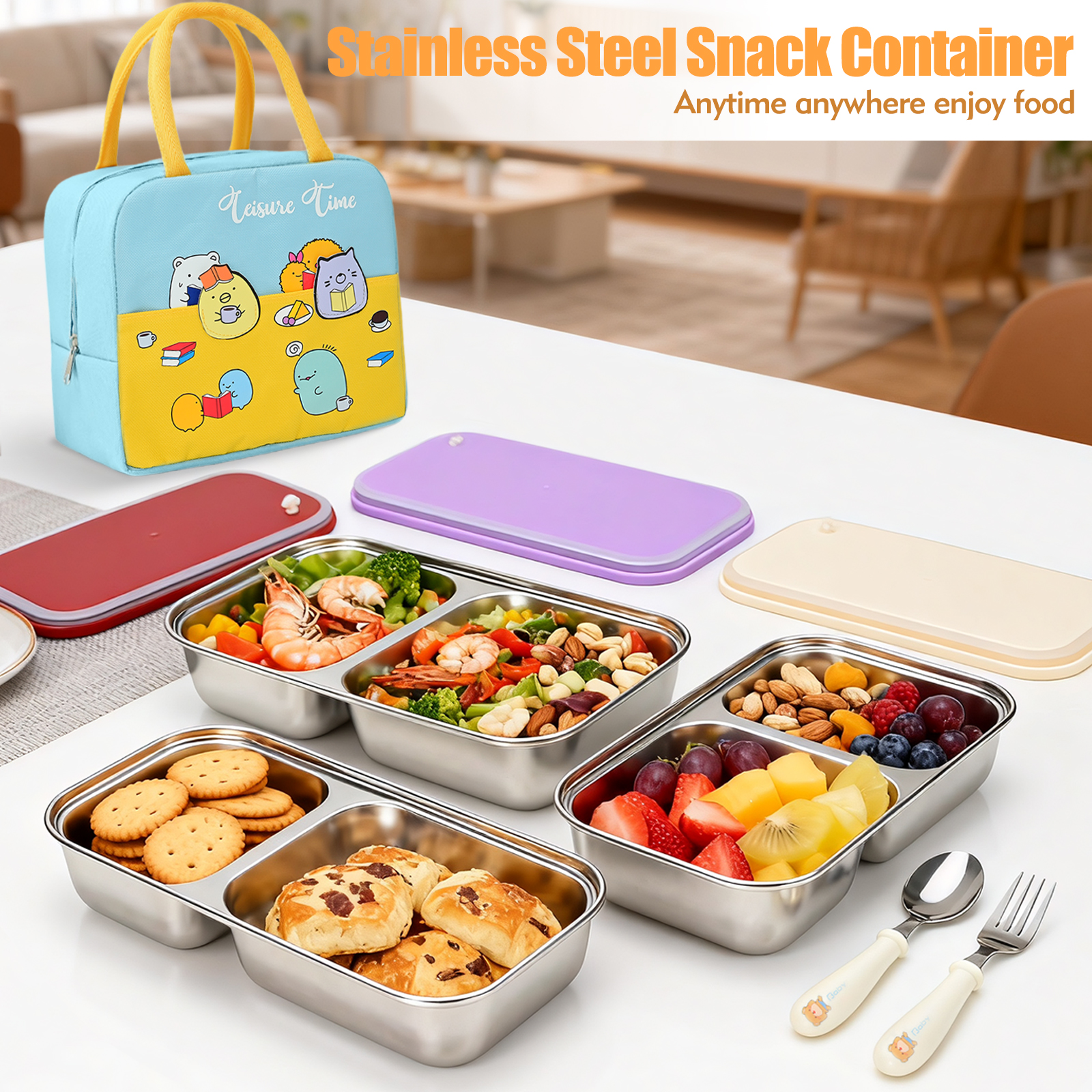 - Premium Material: This small snack container is made of food-grade 304 stainless steel, these food containers are shatterproof and reusable, replace disposable plastic boxes and reduce environmental pollution. which is odorless,non-toxic,safe,durable, safe for long-term use, they won’t leach harmful chemicals, take care of the health of you and your family